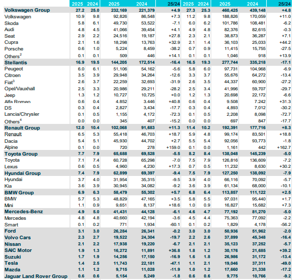 不过,电动汽车领域其实是当月报告中难得的亮点。由于汽车制造商大力推广电动汽车以符合更严格的排放法规,2月欧洲市场电动汽车销量整体增长了26%。